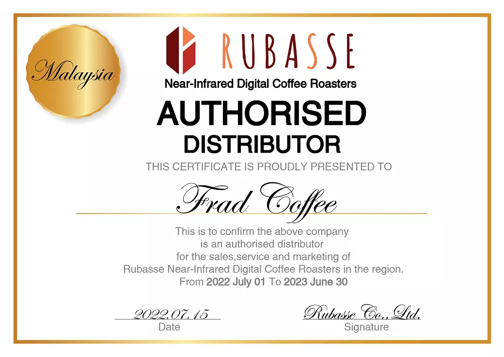 We are happy to announce that Frad Coffee located in Penang, Malaysia will become the official Malaysia distributor of Rubasse NIR digital roasters!!
