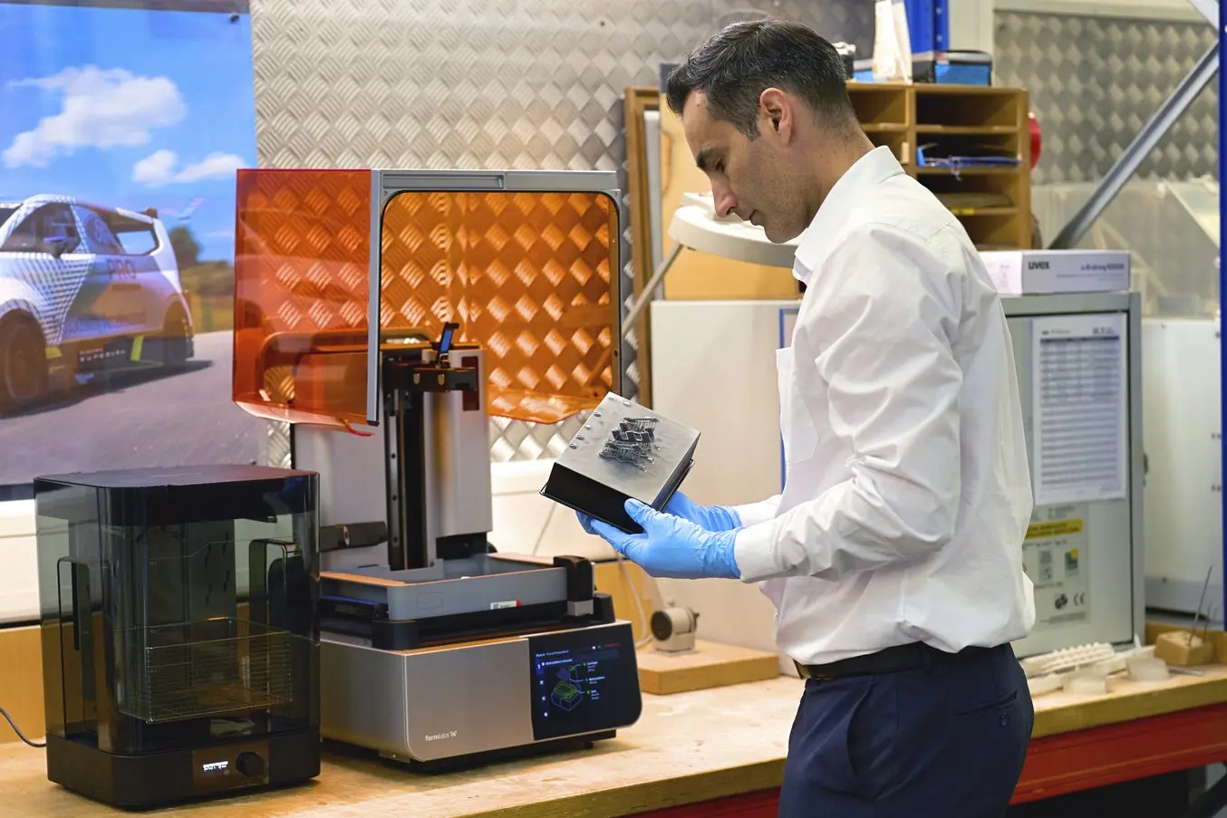 SLA 3D 列印機主要在汽車運用於設計原型,這些原型需要良好的表面品質以及快速生產進行迭代。 PD Merkenich 的第一台 Formlabs 列印機是 Form 2,但他們很快就將其裝置規模擴大到多台桌上型裝置和 Form 3L。最近,他們是第一批獲得 Formlabs 最新 遮罩式立體光刻 3D 列印機 Form 4 的公司之一。