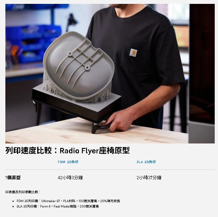 先進的MSLA技術,例如Form 4和Form 4L,提​​供了速度最快、最可靠的3D列印解決方案。一次性固化每一層是提升列印速度的關鍵因素,但其他因素,例如Form 4的雙層柔性薄膜樹脂槽、脫模紋理、高速自動樹脂填充和快速樹脂加熱,也縮短了整體列印時間。