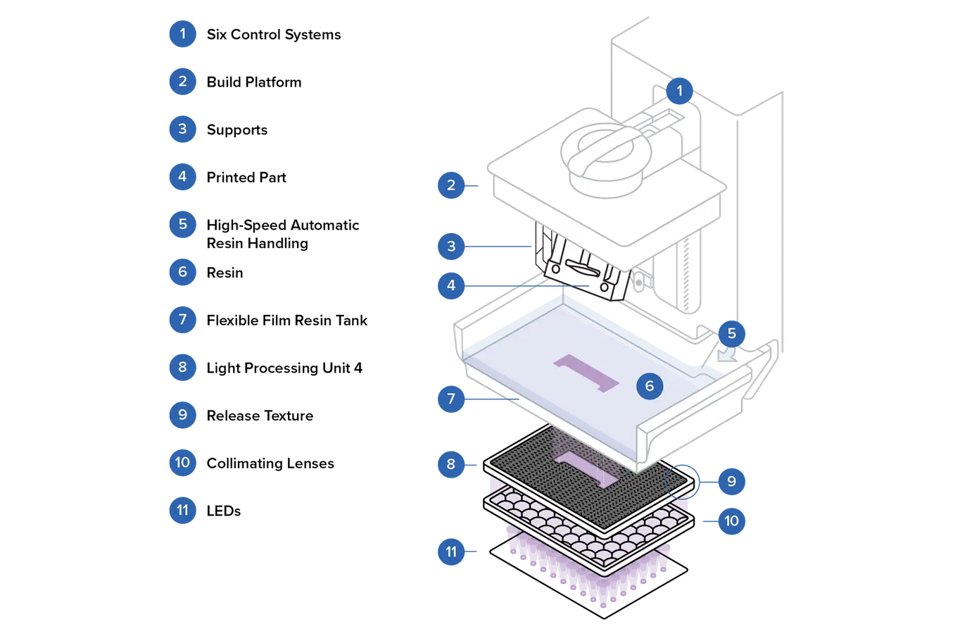 這是 Formlabs 低應力光固化成型技術 (LFS) 列印引擎的圖形表示,這是一種先進的 SLA 3D 列印技術。